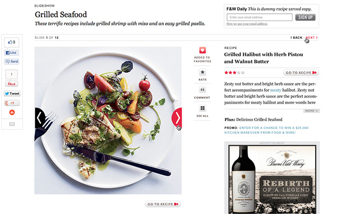 We created a high definition slide show experience for foodandwine.com with the following improvements: larger images, image-only refresh, carousel navigation, ability to add